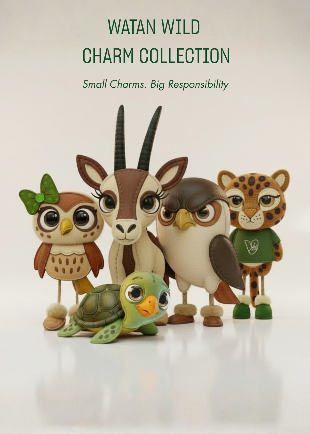 Each character comes to life as a plant-based leather charm - playfully functional, irresistibly adorable, and rich in story. With every piece, a percentage of proceeds is donated to initiatives dedicated to preserving their ecosystems, turning conscious design into meaningful impact.